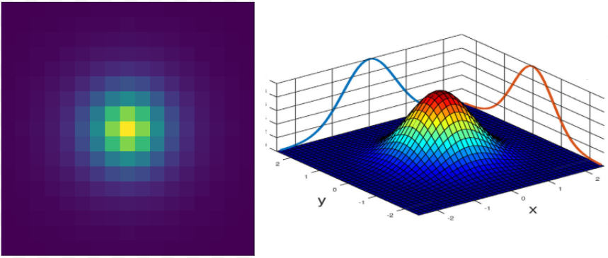 For each of the selected windows the obtained blur kernel is modeled as a 2D gaussian function using a non-linear least squares approach. In particular, the dispersion values along its main axis \({\sigma}_{x}\), \({\sigma}_{y}\) are estimated. From the \({\sigma}\) we calculate the FWHM in the row- and column-wise direction of the images.